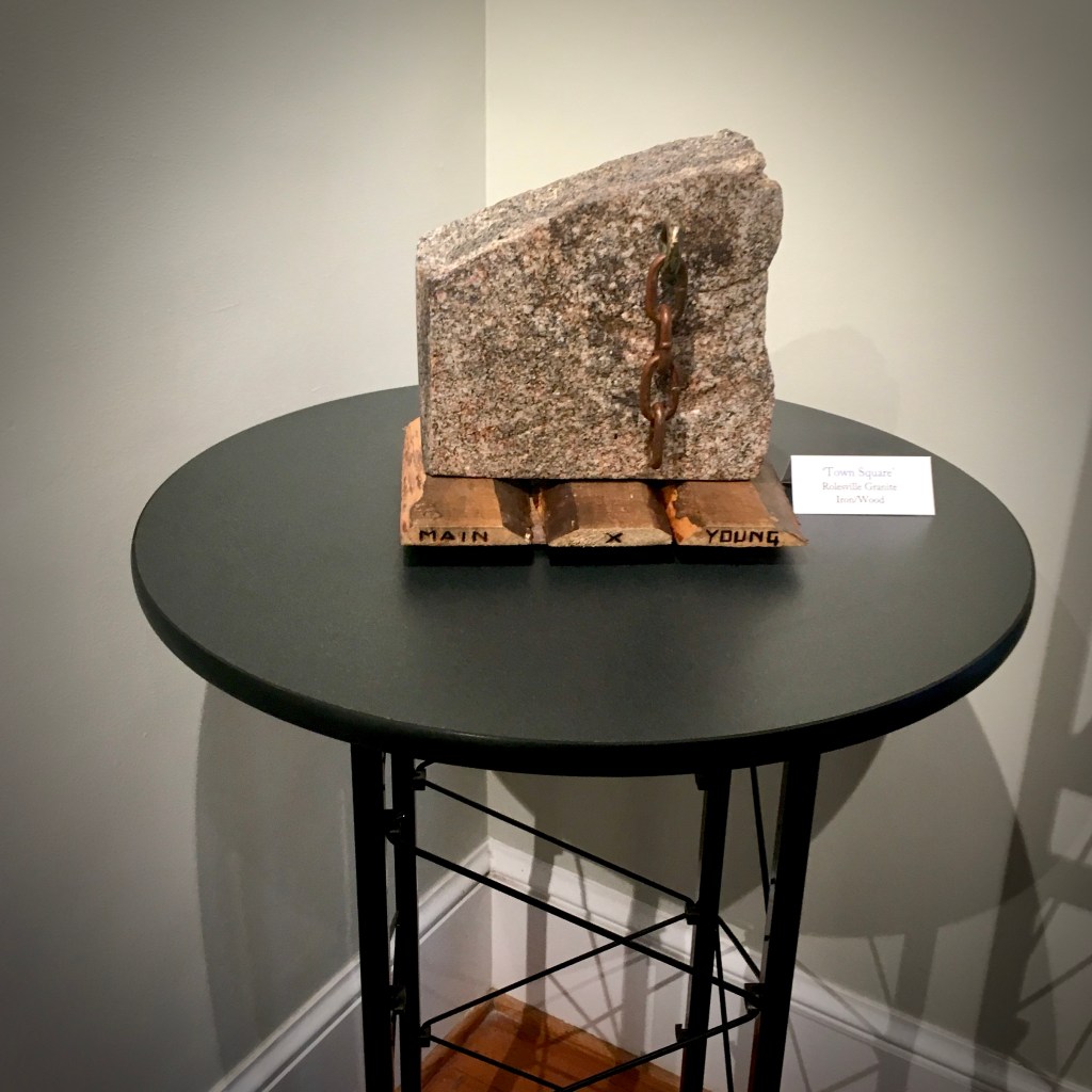 TOWN SQUARE. On display at the Little House Museum and Gallery, Rolesville NC. Granite, Aged Iron Chain, Aged Boards